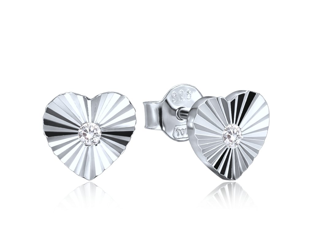 Stříbrné náušnice MINET se srdíčky a zirkony jsou vyrobeny ze stříbra Ag 925/1000 s rhodiovaným povrchem, který pomáhá udržet krásnou barvu i lesk. Puzetové zapínání umožňuje pohodlné nošení. Decentní motiv působí jemně a univerzálně.