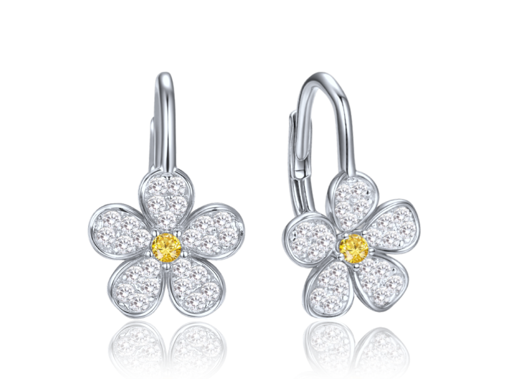 4858 MINET Dětské stříbrné náušnice kytička se žlutými a bílými zirkony