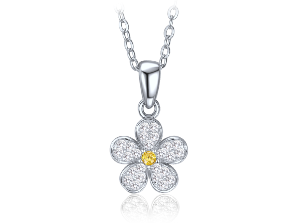 4856 MINET Dětský stříbrný náhrdelník kytička se žlutým a bílým zirkonem