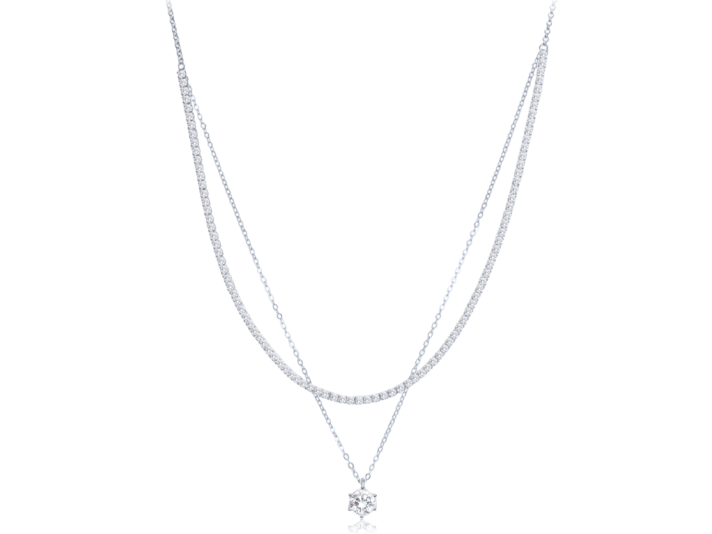 Dámský dvojitý náhrdelník ze stříbra Ag 925/1000 s rhodiovaným povrchem si zachovává dlouhodobý lesk i barvu. Bílý zirkon dodává jemný třpyt a elegantní vzhled. MINET je česká značka zaměřená na kvalitní hodinky a šperky ze stříbra a zlata.