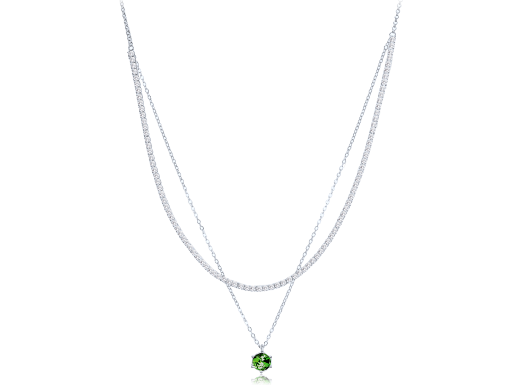 Dvojitý náhrdelník ze stříbra Ag 925/1000 s rhodiovaným povrchem si zachovává lesk i barvu. Zelený a bílý zirkon vytváří elegantní kontrast. MINET je česká značka zaměřená na kvalitní hodinky a šperky ze stříbra a zlata.