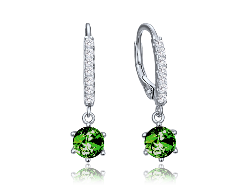 Náušnice ze stříbra Ag 925/1000 s rhodiovaným povrchem si zachovávají lesk i barvu. Zelené a bílé zirkony dodávají třpyt. MINET je česká značka zaměřená na kvalitní hodinky a šperky ze stříbra a zlata.