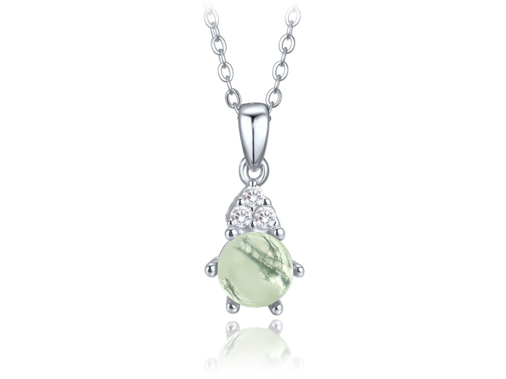 4753 MINET Elegantní stříbrný náhrdelník se světlým mechovým achátem a zirkonem