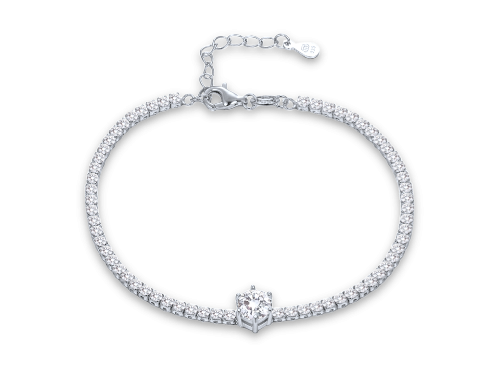 Dámský náramek ze stříbra Ag 925/1000 s rhodiovaným povrchem si zachovává lesk. Bílý zirkon dodává jemný třpyt. MINET je česká značka zaměřená na kvalitní hodinky a šperky ze stříbra a zlata.