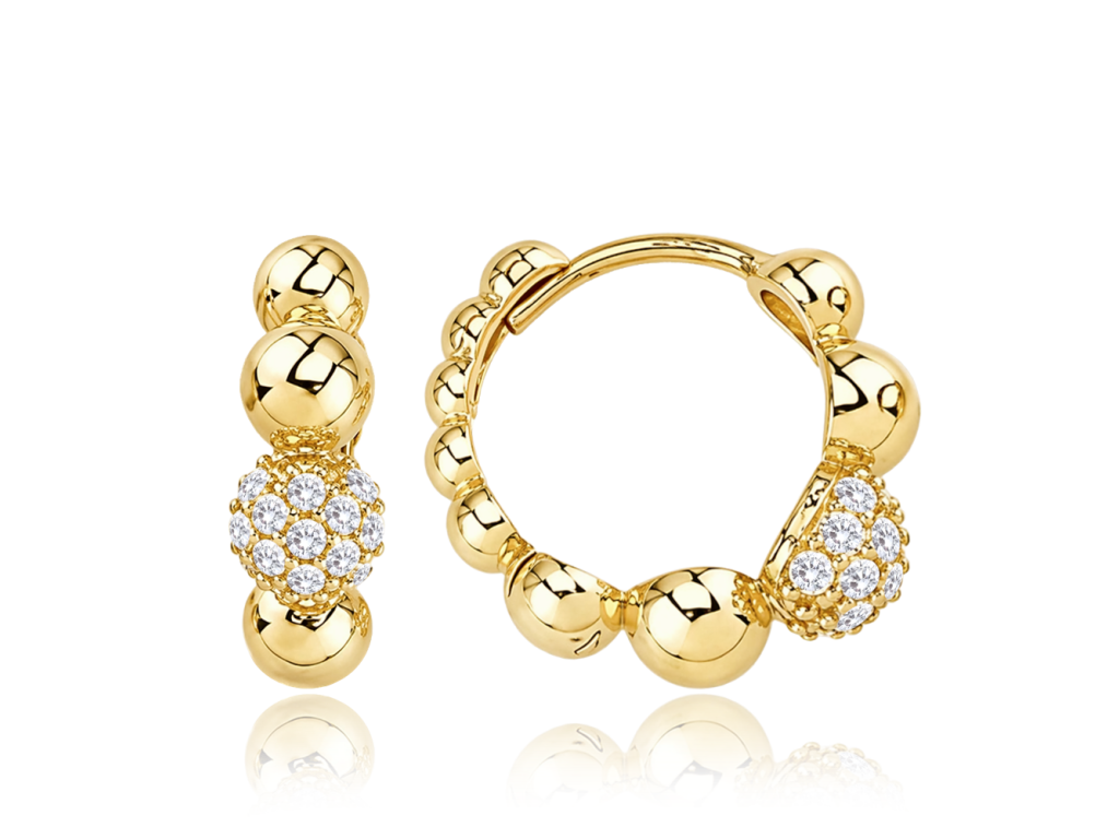 4943 MINET Elegantní zlaté náušnice a kuličkami a se zirkony Au 585/1000 2,50g