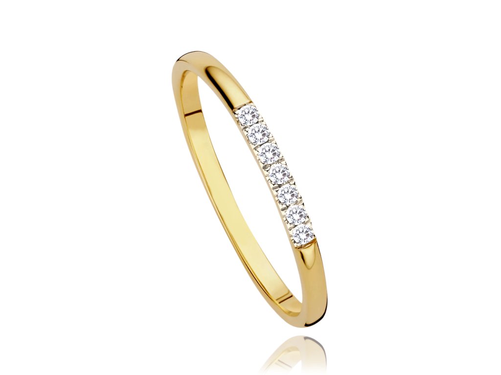 Moderní prsten z pravého 14karátového zlata je zdobený bílými zirkony. Prsten je vhodný pro každodenní nošení i zvláštní příležitosti. Kvalitního zpracování si všimnete hned po prvním nošení.