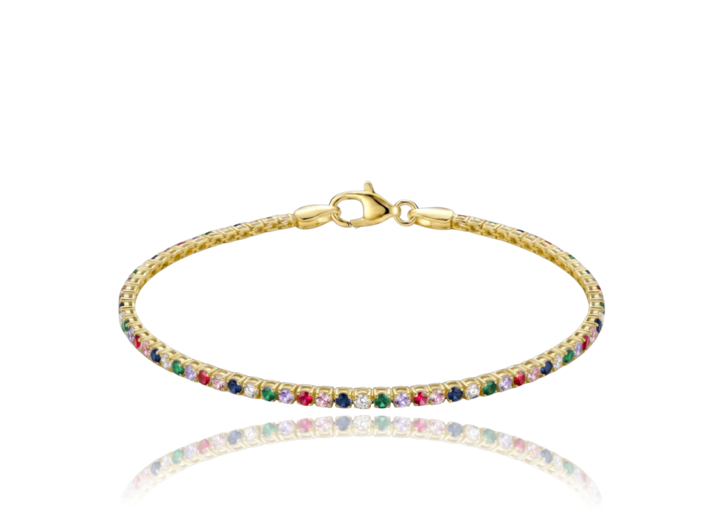 4988 MINET Elegantní zlatý tenisový náramek s různobarevnými zirkony Au 585/1000 1,90g