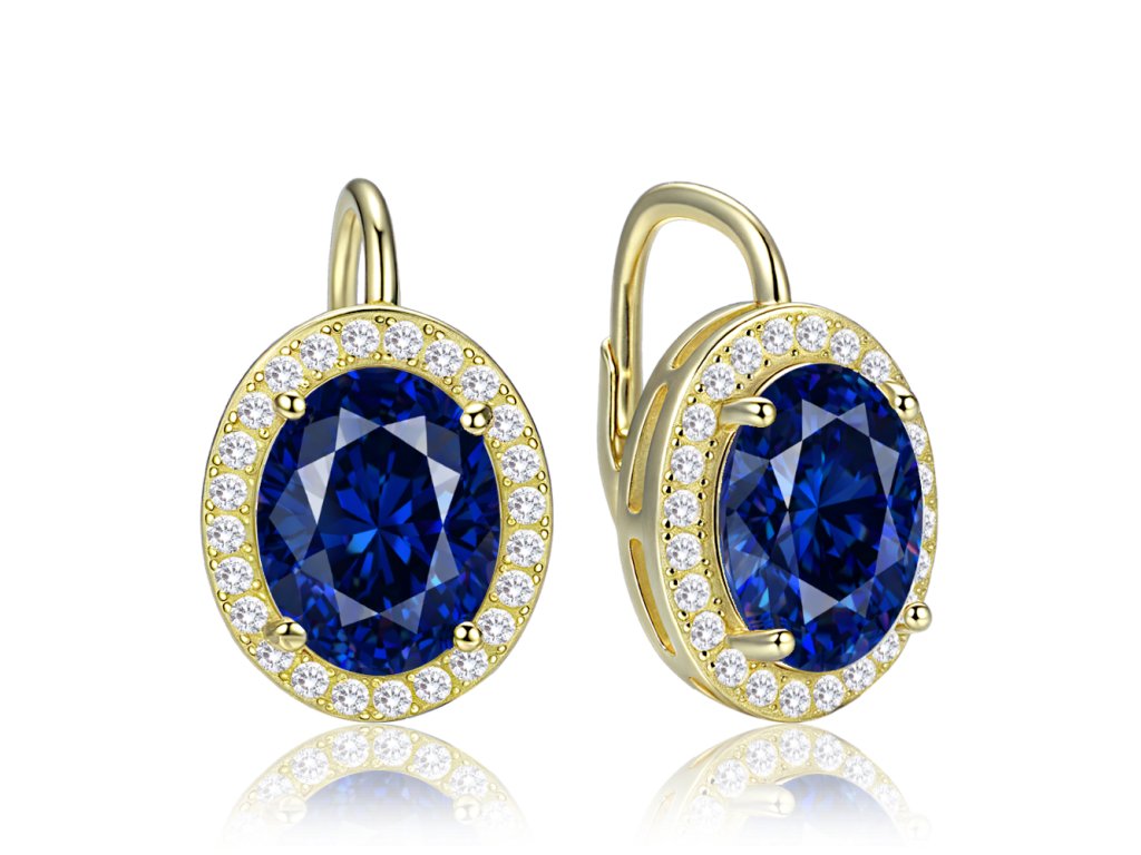 4778 MINET Luxusní pozlacené stříbrné náušnice s modrými a bílými zirkony