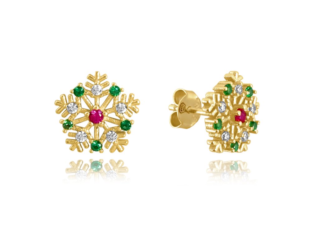 1066 MINET Pozlacené stříbrné náušnice SNĚHOVÉ VLOČKY s barevnými zirkony