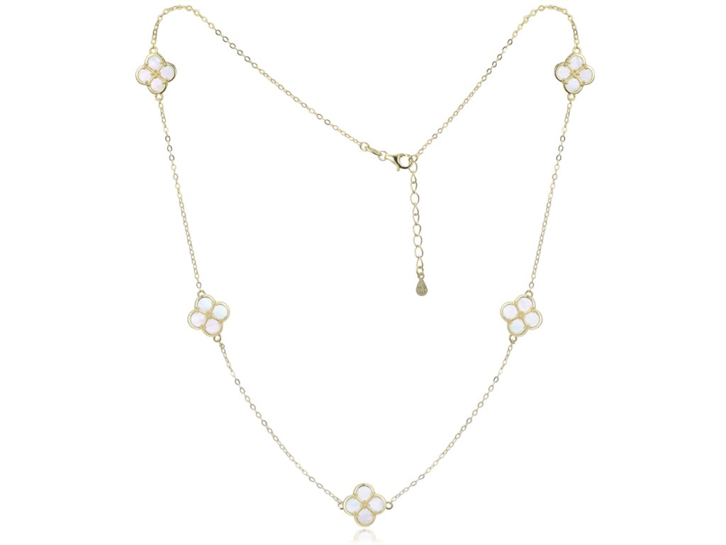 1155 MINET Pozlacený stříbrný náhrdelník čtyřlístky s bílou perletí