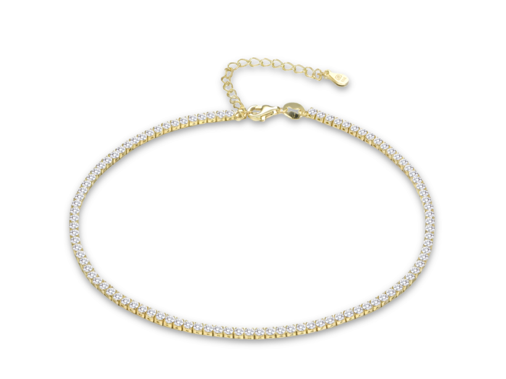 Dámský tenisový řetízek na kotník MINET je vyroben ze stříbra Ag 925/1000 s pozlacením a ochrannou vrstvou e-coating. Bílý zirkon dodává jemný třpyt a luxusní vzhled vhodný pro každodenní i slavnostní nošení. MINET je česká značka zaměřená na kvalitní hodinky a šperky ze stříbra a zlata.
