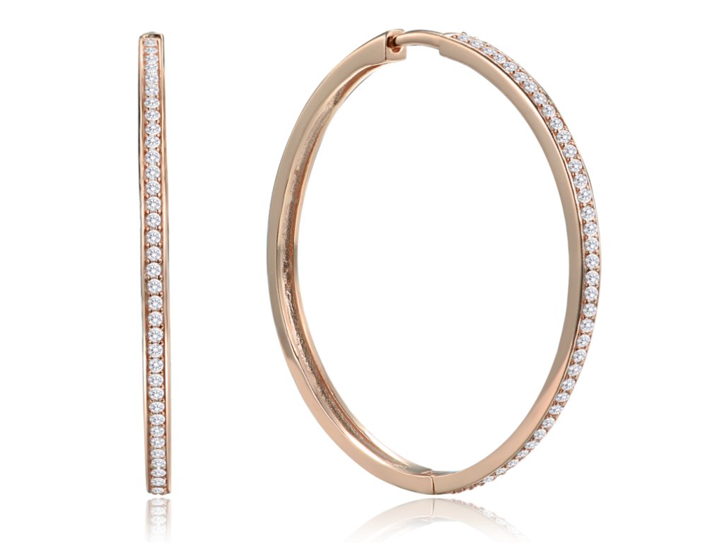 1372 MINET Rose gold stříbrné náušnice hranaté kruhy 4 cm s bílými zirkony