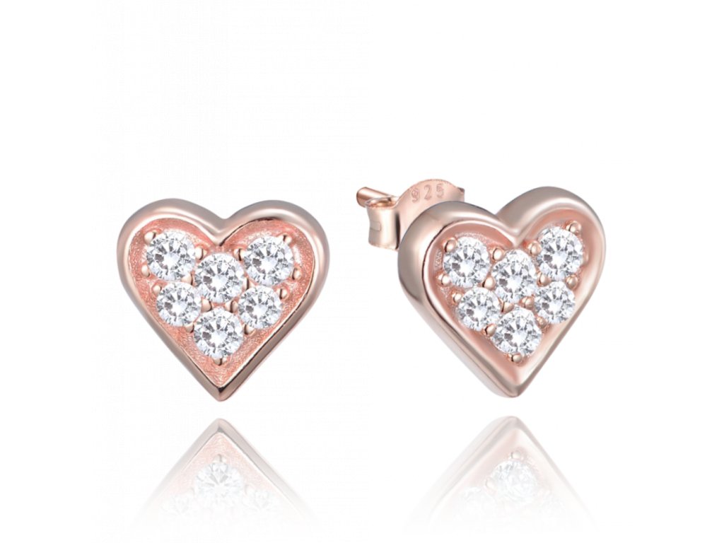 1411 MINET Rose gold stříbrné náušnice srdíčka se zirkony
