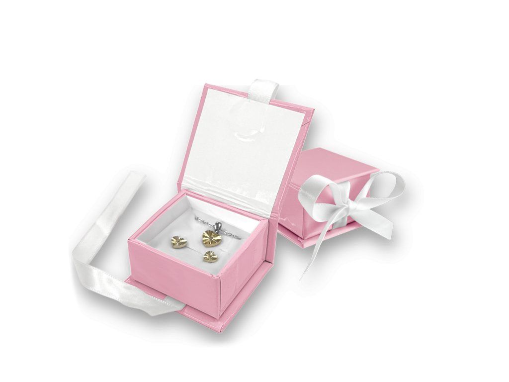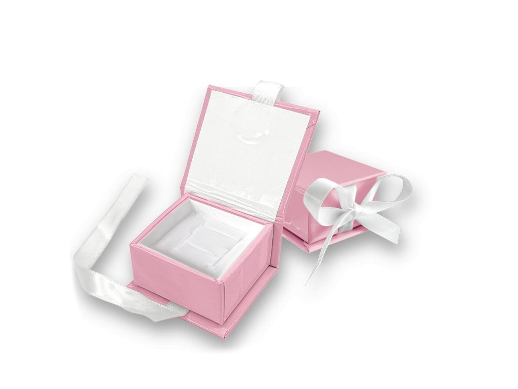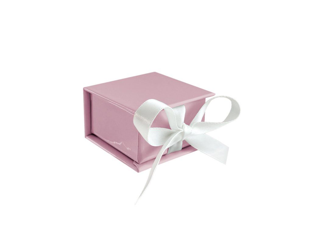 4823 MINET Růžová magnetická krabička na šperky s bílou stuhou - 5 x 5 x 3 cm