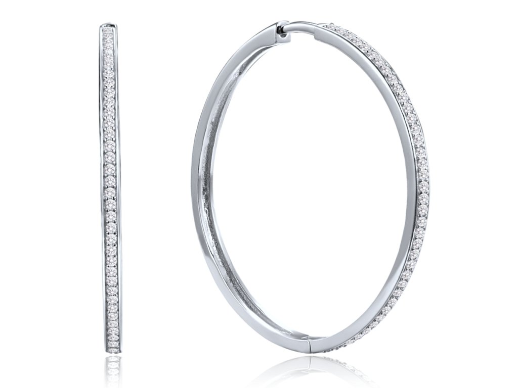 1519 MINET Stříbrné náušnice hranaté kruhy 4 cm s bílými zirkony