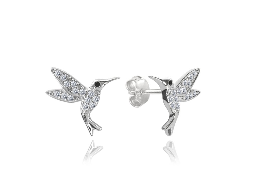 1527 MINET Stříbrné náušnice KOLIBŘÍCI s bílými zirkony