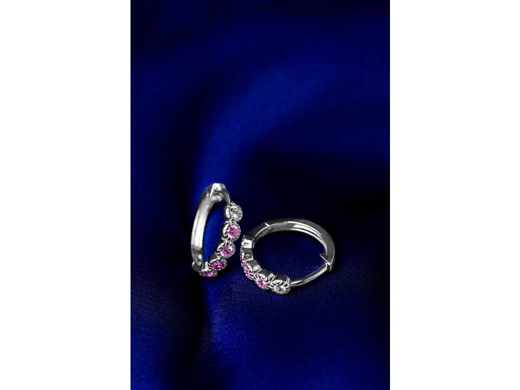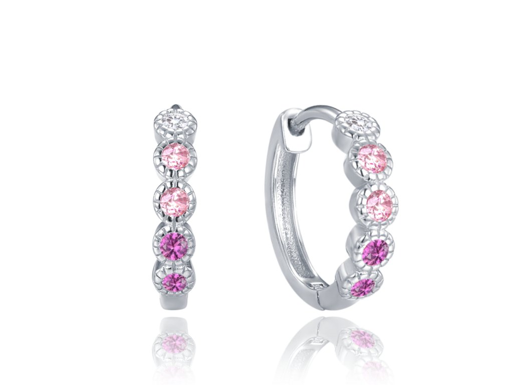 1542 MINET Stříbrné náušnice kroužky s bílými, růžovými a červenými zirkony
