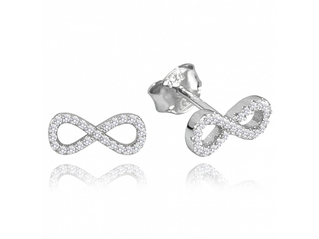 Stříbrné náušnice MINET se symboly nekonečna jsou odrazem současných trendů. Zajímavě posazené kamínky z nich udělají originální doplněk pro každodenní nošení.