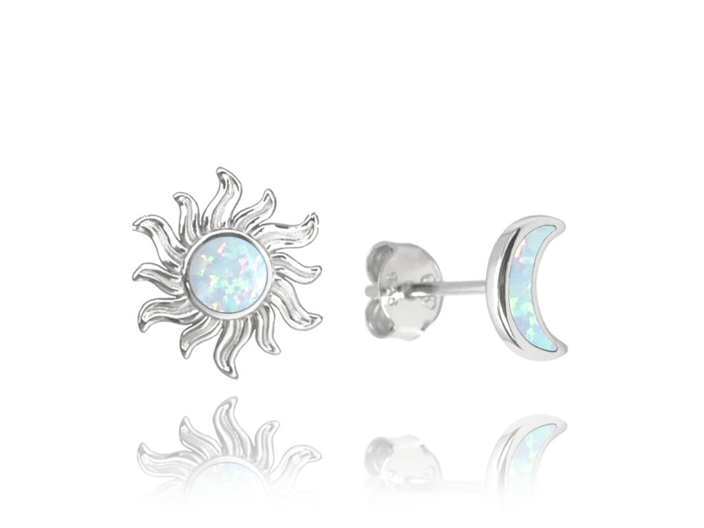 1754 MINET Stříbrné náušnice slunce a měsíc s bílým opálem