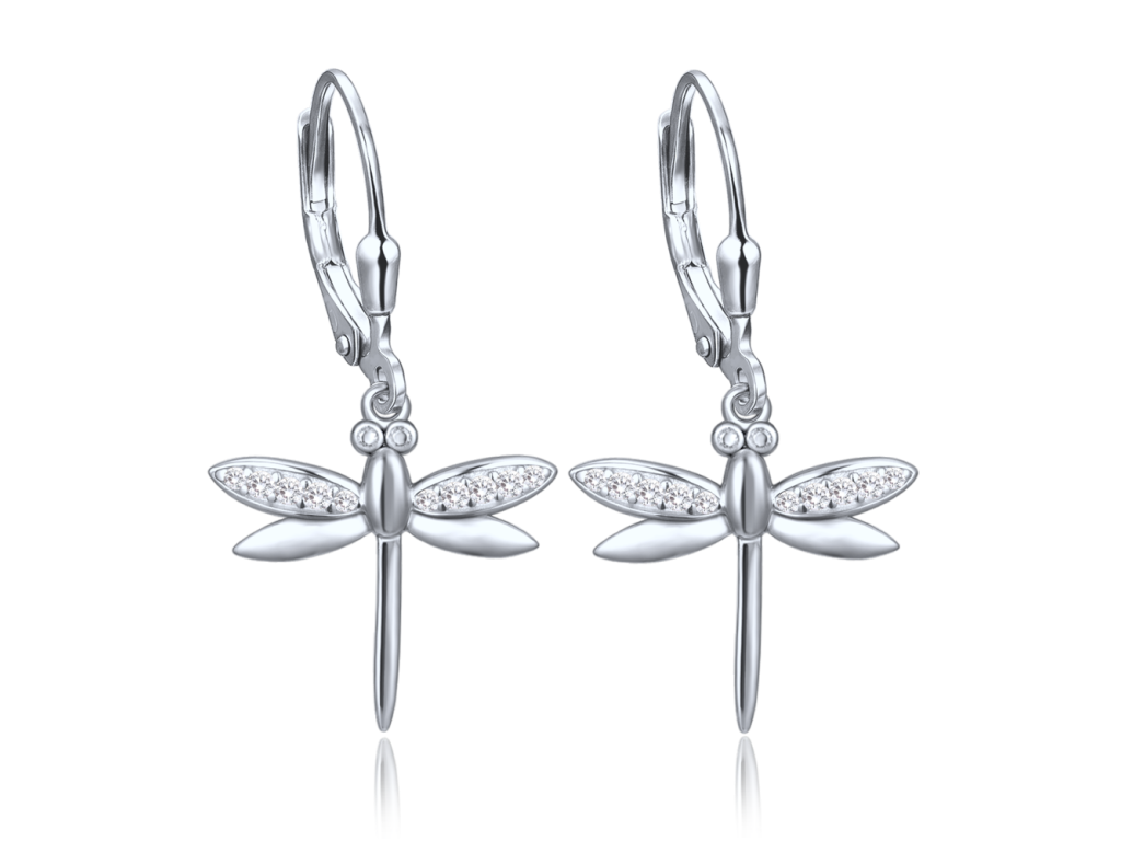 4844 MINET Stříbrné náušnice vážka s bílými zirkony