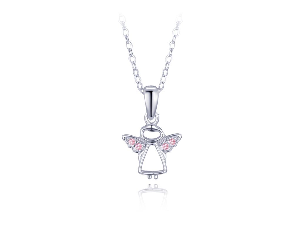 1869 MINET Stříbrný náhrdelník anděl s růžovými zirkony