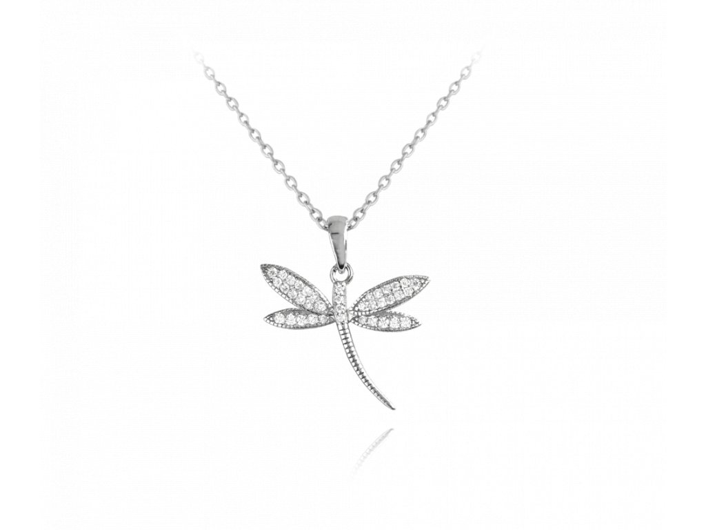 2212 MINET Stříbrný náhrdelník VÁŽKA s bílými zirkony