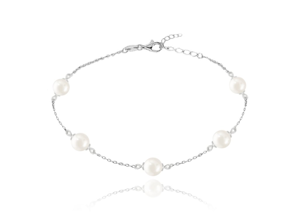2496 MINET Stříbrný řetízek na kotník s přírodními perlami