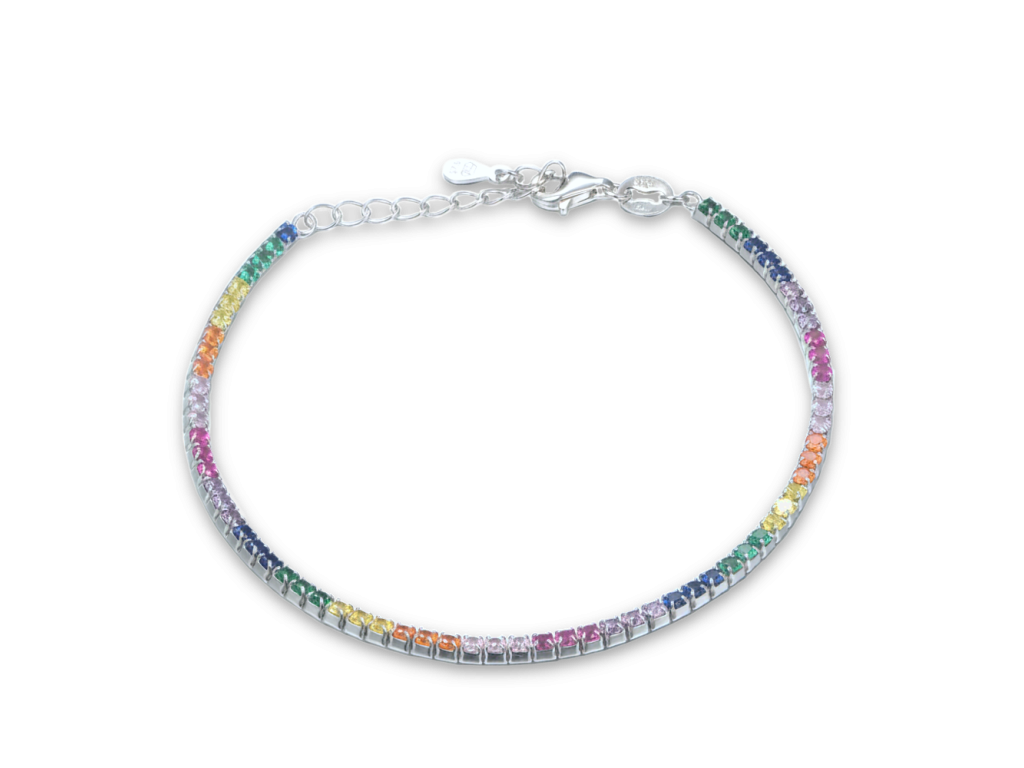 4863 MINET Stříbrný tenisový náramek s různobarevnými zirkony