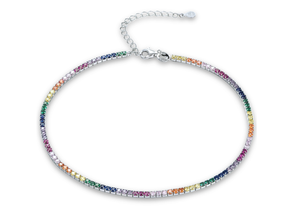 4880 MINET Stříbrný tenisový řetízek na kotník s různobarevnými zirkony