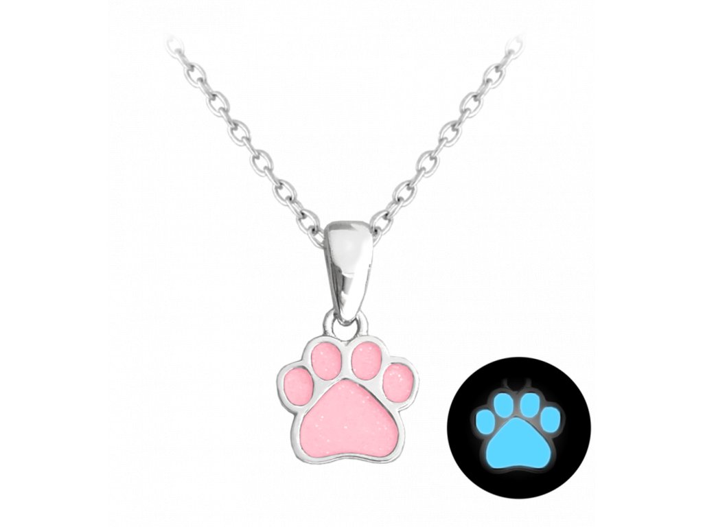 2526 MINET Svítící růžový stříbrný náhrdelník TLAPKA