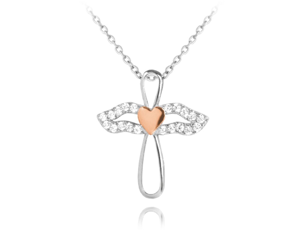 2573 MINET Třpytivý stříbrný náhrdelník ANDĚL s růžovým srdíčkem