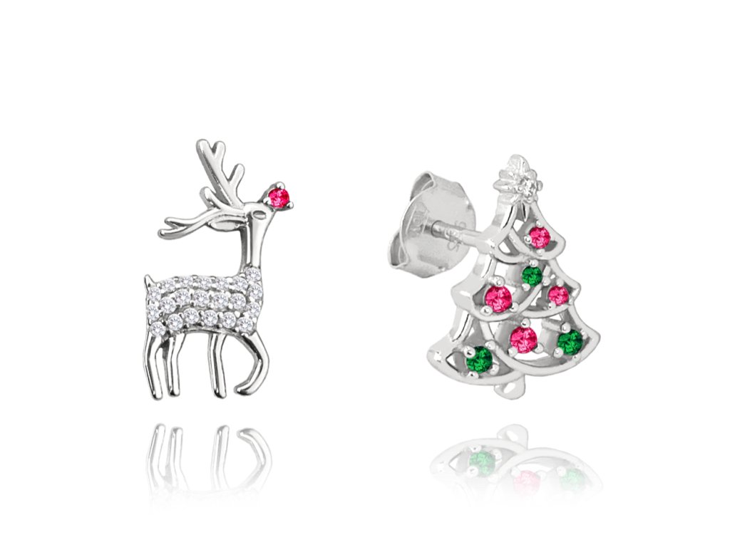 2591 MINET Vánoční stříbrné náušnice SOB a STROMEČEK
