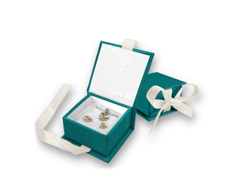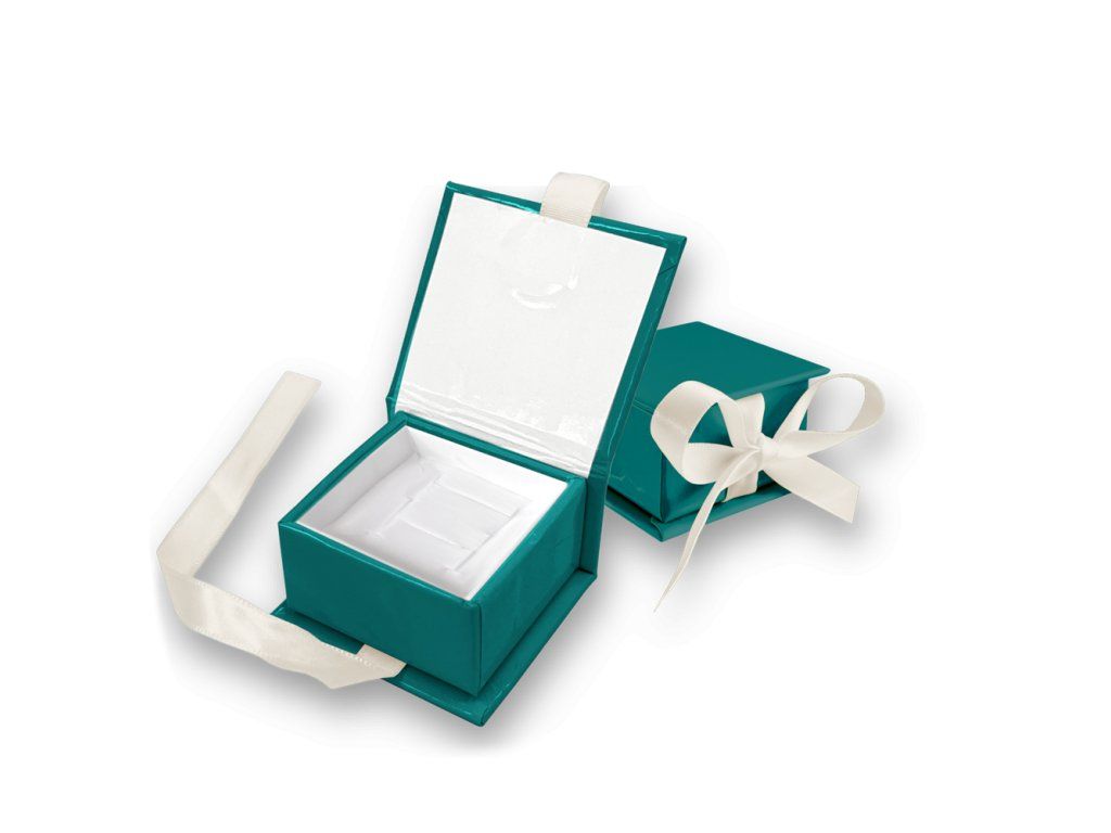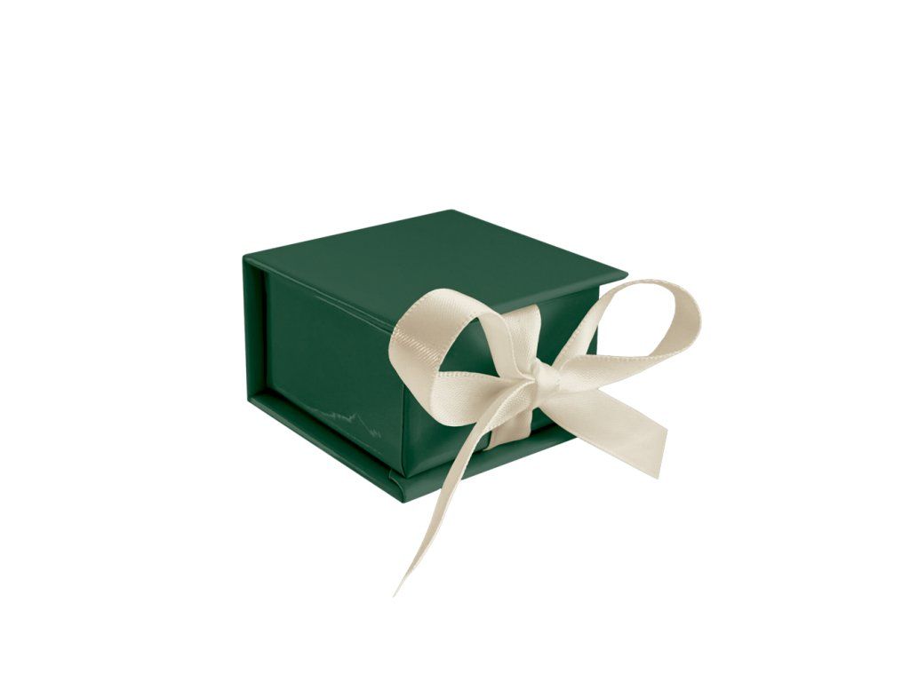 4828 MINET Zelená magnetická krabička na šperky s béžovou stuhou - 5 x 5 x 3 cm