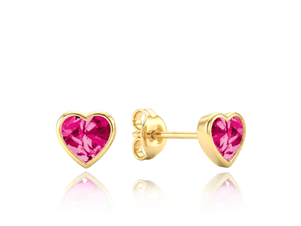 4978 MINET Zlaté náušnice srdíčka s růžovými zirkony Au 585/1000 1,85g