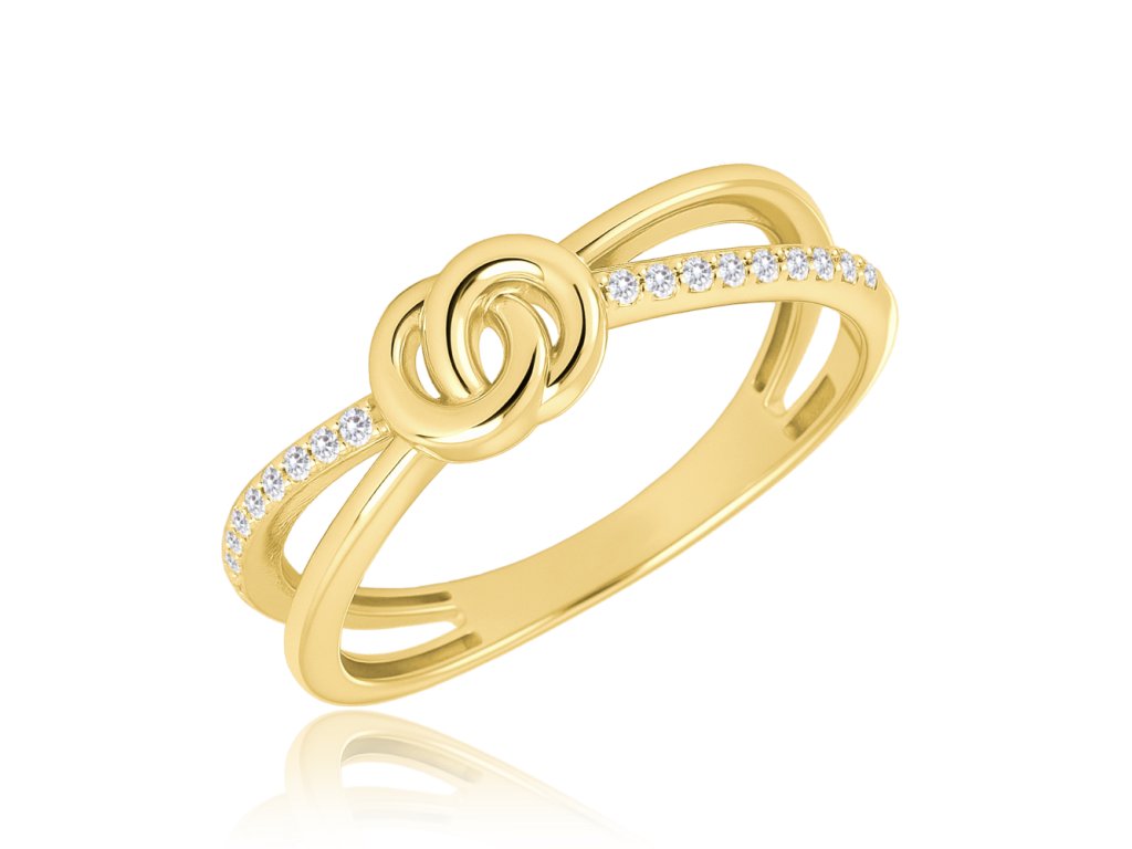 4598 MINET Zlatý prsten s motivem kroužku a bílým zirkonem Au 585/1000