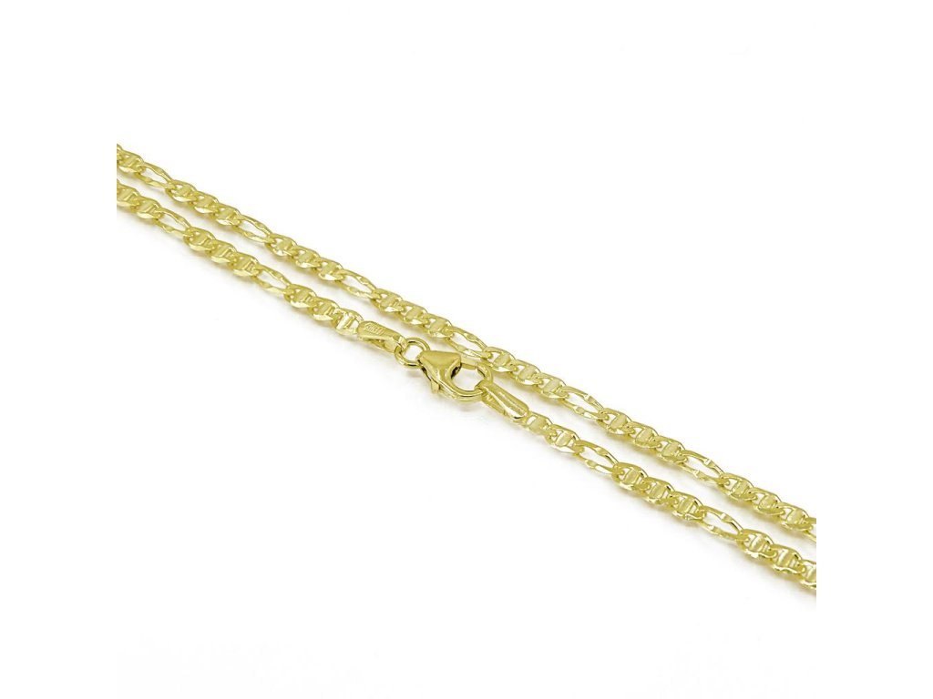 Řetízek Figaro na krk se šířkou vzoru 2,5 mm. Zapínání je na karabinu. Řetízek je vyroben ze žlutého čtrnáctikarátového zlata s lesklou povrchovou úpravou a v diamantovém brusu, tak ať působí třpytivým dojmem.
