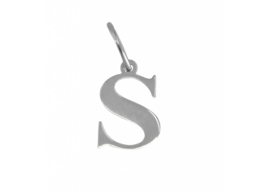 Celozlatý přívěšek do tvaru tiskacího písmene S, který je vyrobený z bílého čtrnáctikarátového zlata s lesklou povrchovou úpravou.