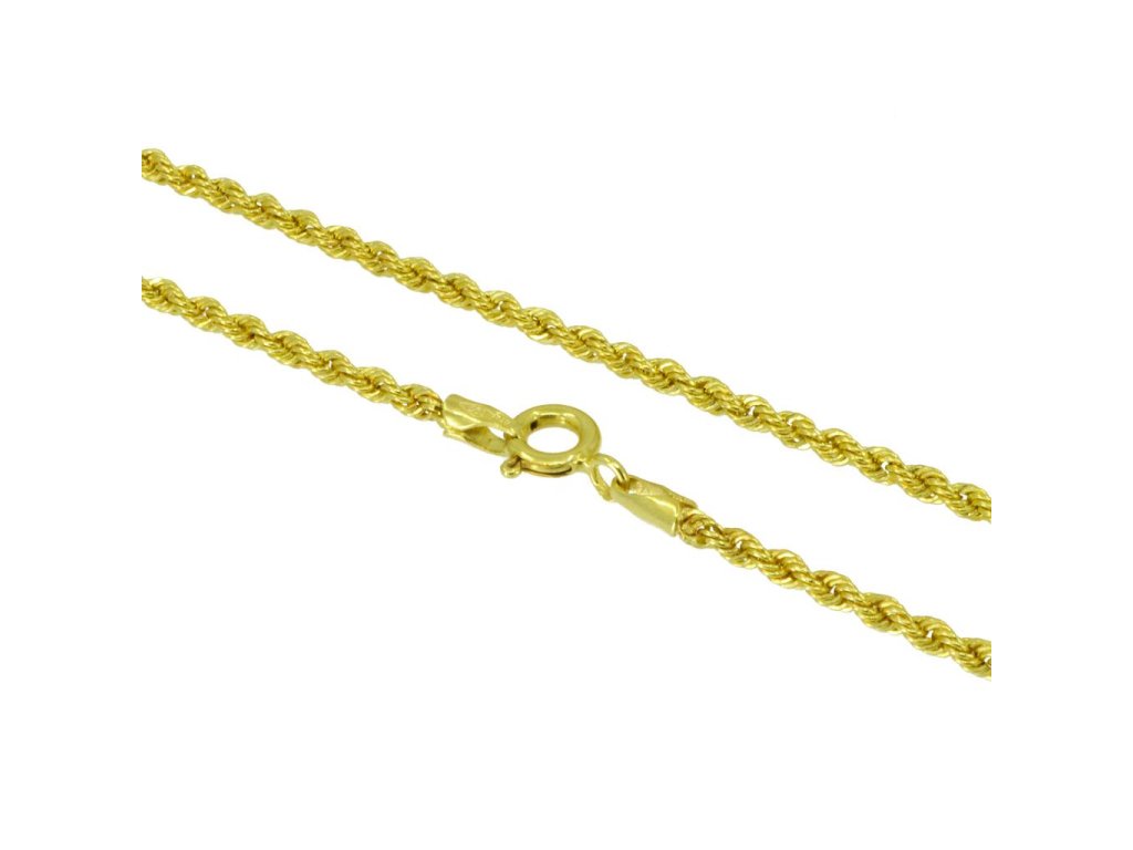 Řetízek ve vzoru Valis na krk se šířkou vzoru 3,20 mm. Zapínání je na pérový kroužek (očko). Řetízek je vyroben ze žlutého čtrnáctikarátového zlata s lesklou povrchovou úpravou a v diamantovém brusu, tak ať působí třpytivým dojmem.